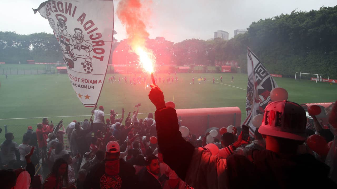 Torcida faz festa em embarque do São Paulo para a final da Copa Sul-Americana - quanto tempo dura um jogo de futebol americano